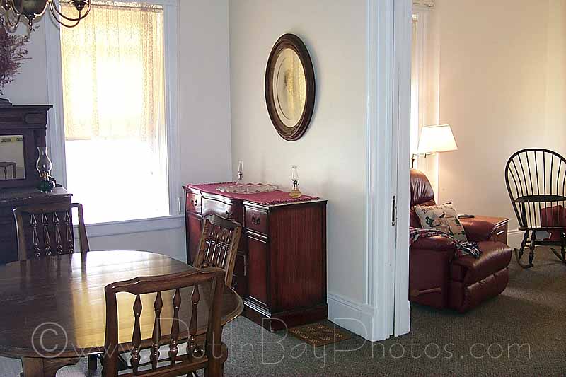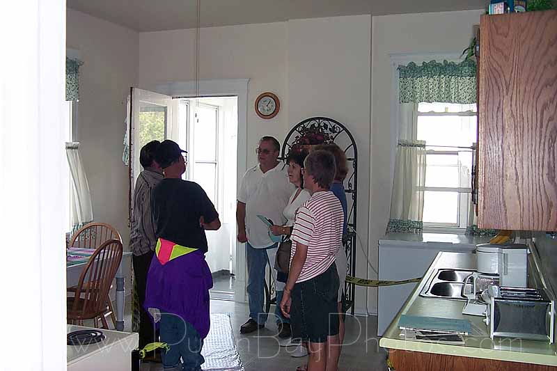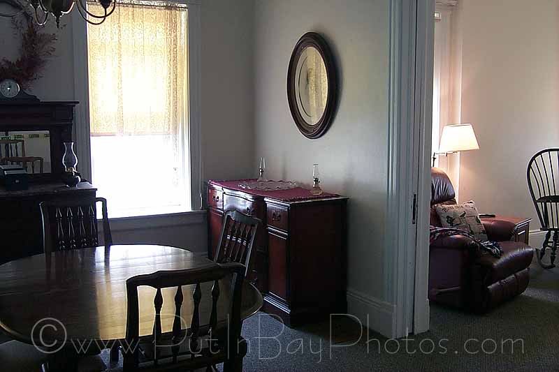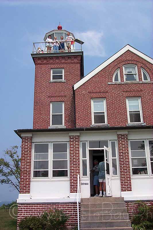 The grounds are a mixture of lush green lawns and bands of trees running along the shoreline. Several maples and oaks spread their branches to shade the south wall of the house. These contrast nicely with the lighthouse red brick of the 120 year old structure.
