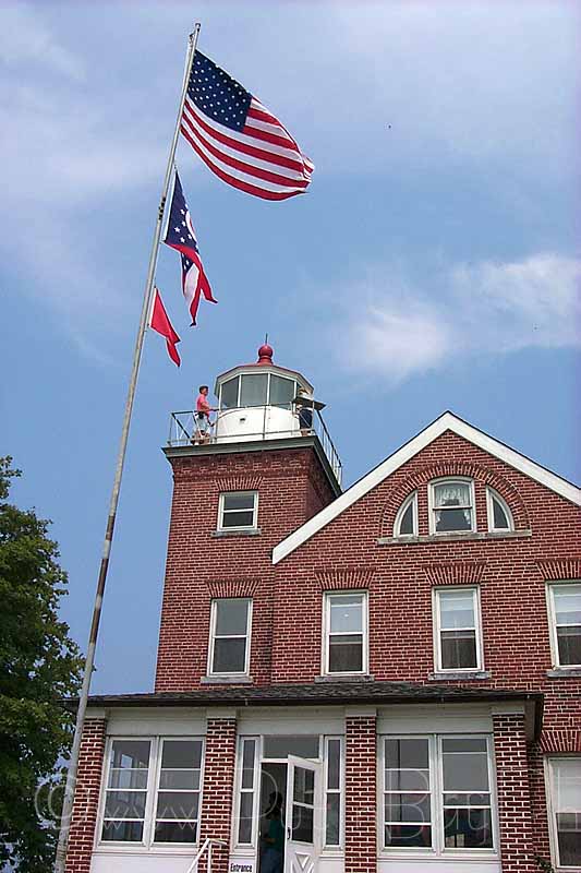 In 1962, the U.S. Coast Guard erected a new white skeleton light tower. The house was aquired by The Ohio State University and is currently used as a private residence. Visitors are allowed to view the lighthouse during specially arranged tours.