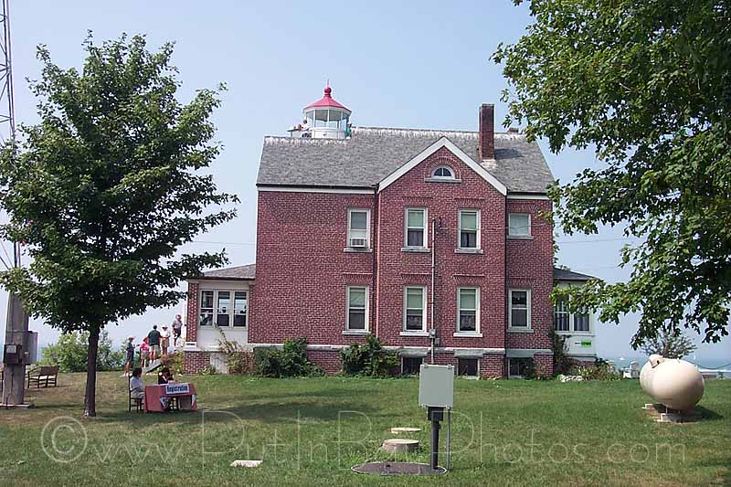 The beautiful South Bass Island Lighthouse was built in 1892 on a rugged piece of shoreline known as Parker's Point that forms the southwestern tip of the island. The three story house is expansive. The keeper and his family must have had a near full-time job keeping it ready for surprise visits from the lighthouse service inspectors. The brick exterior is interrupted by many windows. The front porch is supported by brick pilasters facing the blue expanse of Lake Erie.