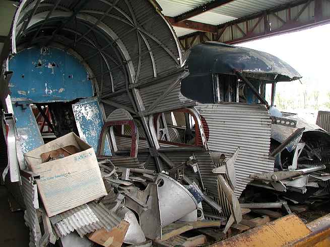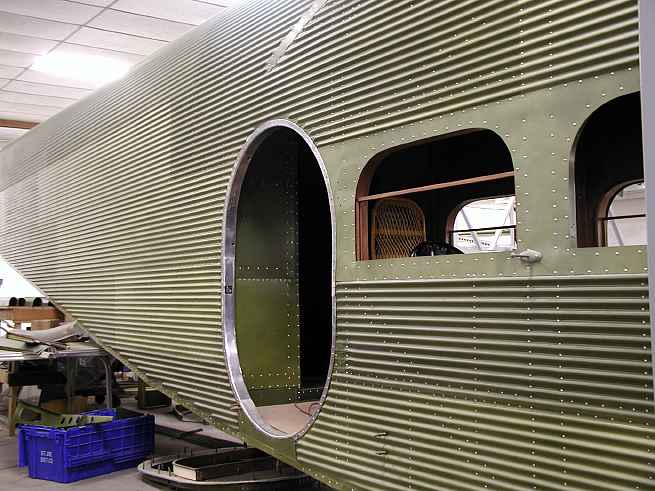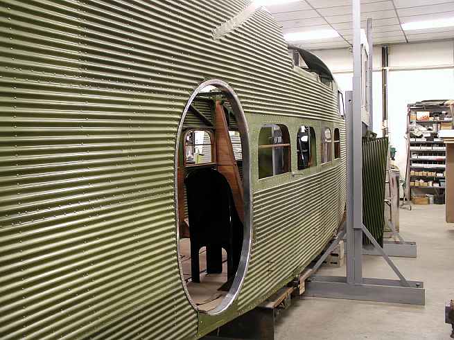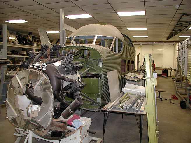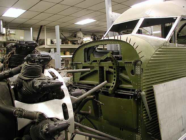 The last Ford Tri-Motor to fly at Put-in-Bay (N-7584) is being restored to it's original condition at Hov-Aire, Inc in Vicksburg, MI. These pictures were all taken on May 2, 2002.